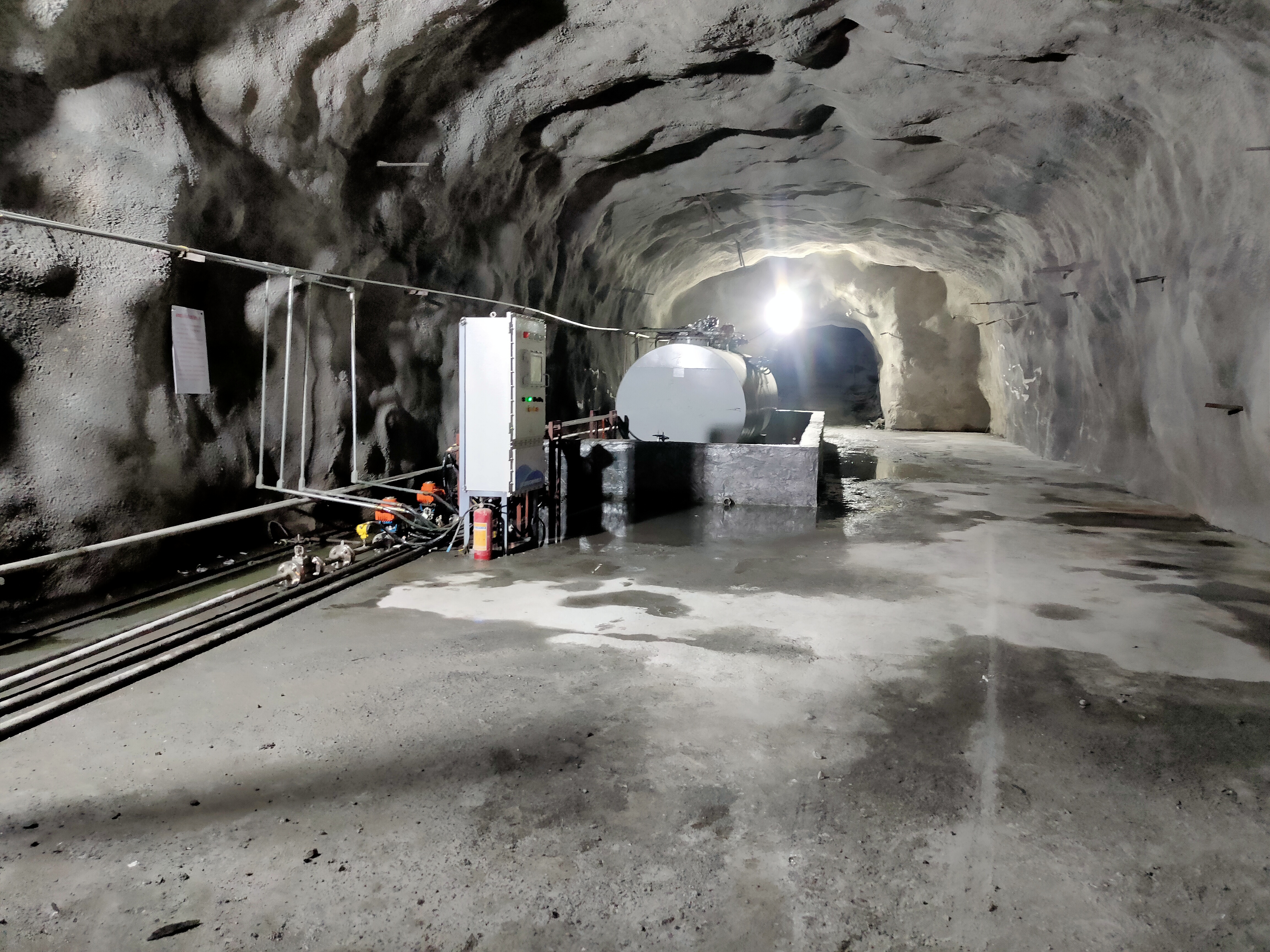 凡口鉛鋅礦井下680米智能供油系統 目前正有序施工中, 預計9月底完工并投入使用。該項目為全國首創, 由韶關企業進行技術攻堅 并申請多項國家專利, 擬申報吉尼斯世界紀錄 “全球最深的智能供油系統”。 凡口鉛鋅礦井下智能供油系統 需在地面設置橇裝加油裝置, 并分別在地下 330米、480米和680米處 建設智能化供油系統, 通過鉆孔鋪設輸油管線, 將油品從地面輸送到井下。 地下330米智能加油點, 目前已進入收尾階段, 現場有兩根 從地面裝置接下來的輸油管, 用于工程車加油, 另一邊也有兩根輸油管輸送到 地下480米和680米的智能加油點。 別看油管很細,鉆孔不大, 但施工難度并不小, 全長3千多米的輸油管, 垂直打孔偏差不能超過1米。 作為亞洲最大的 單體鉛鋅銀礦生產基地, 凡口鉛鋅礦 有井下工程車輛和設備100多臺, 井下用油量大。 井下智能化供油系統啟用后, 不僅解決井下用油安全、環保風險, 同時降低生產用油成本, 推進凡口鉛鋅礦建設智能化礦山, 實現“無人開采”。 如果鉆孔偏差太大,就找不到鉆下來的孔,影響輸油管道的布設,增大成本。3千多米有5千多個焊接點,所有的焊接口都要達到高壓管道的焊接要求,這個項目是全國首創,在全國所有礦山企業中,我們是首次使用通過輸油管道往井下輸油,并且實現智能控制的方案。 這個月底把地下330米加油點完工,開始加油,9月底把底下480米和680米開通使用。希望通過這個項目打造創新科技的韶關樣板,把先進的經驗和技術推廣到全省、全國乃至全球。